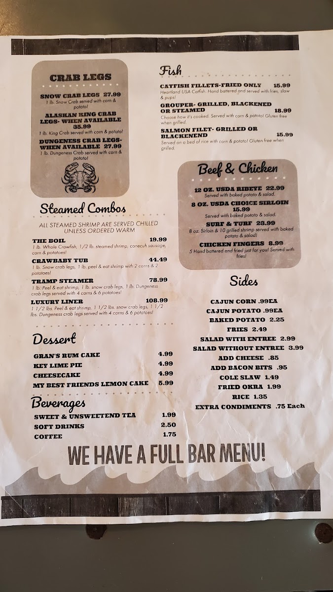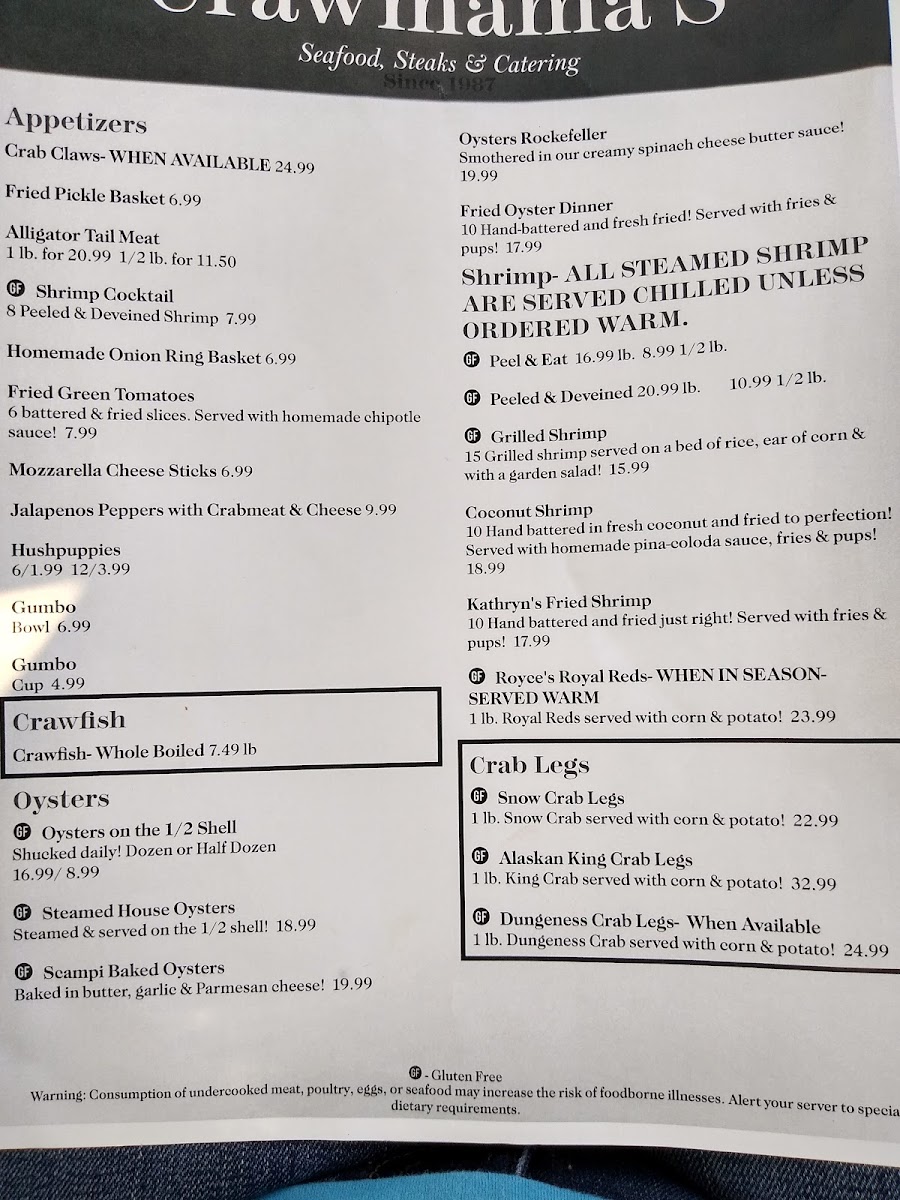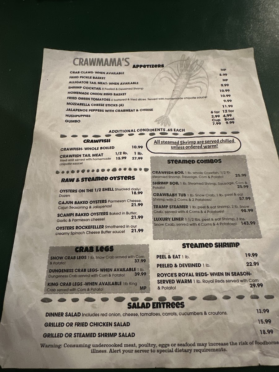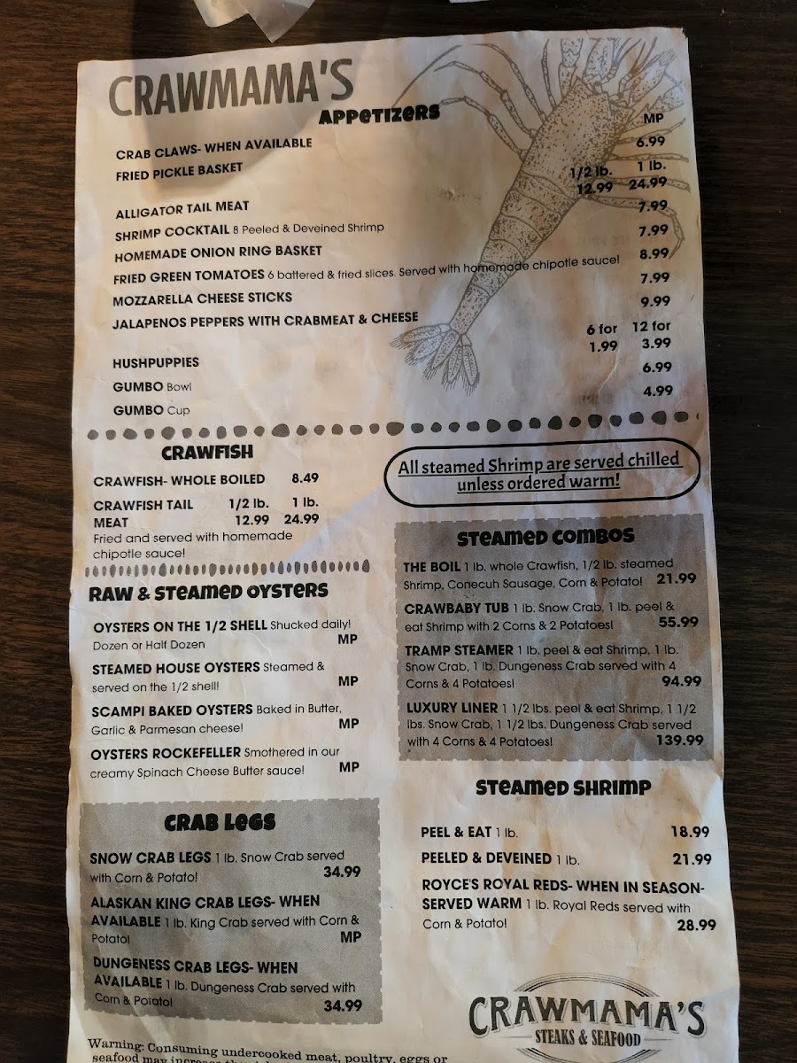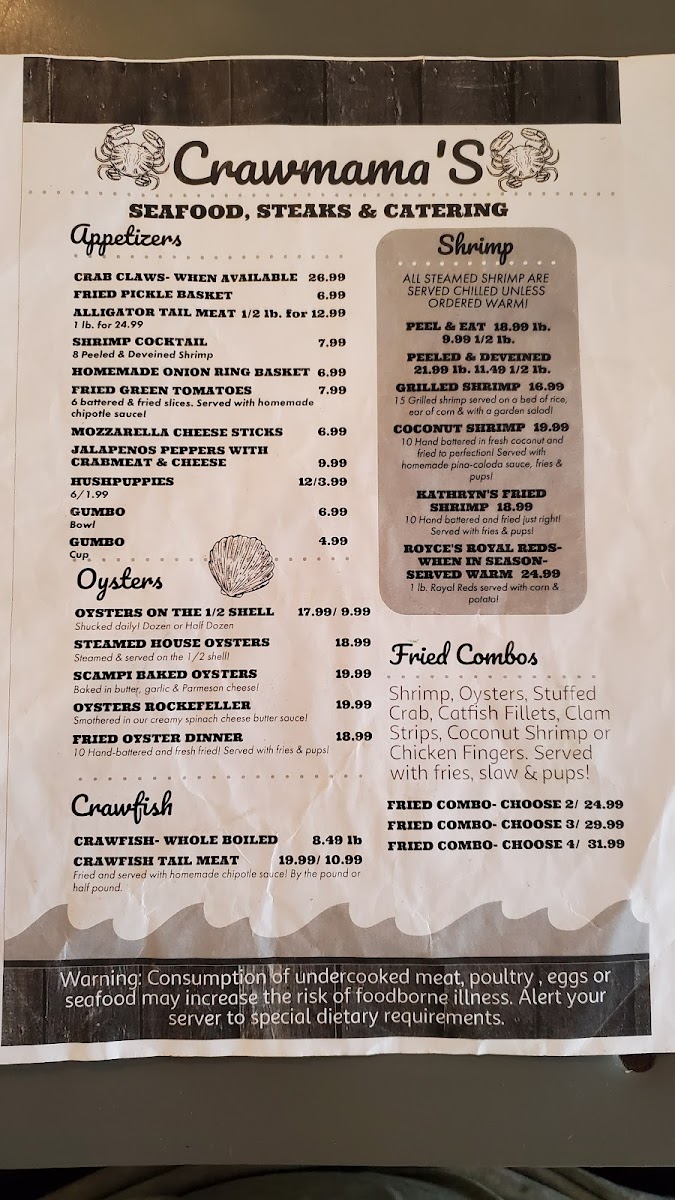 Crawmama's Menu